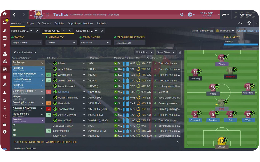 Jako manager otrzymasz do swojej dyspozycji zaawansowane narzędzia trenerskie pozwalające ustalać taktykę na murawie oraz rozwój kariery poszczególnych zawodników.