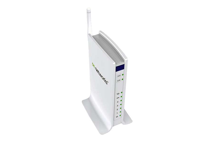 Router NETGEAR On Networks N150RM posiada jeden port telefoniczny RJ-11 z wbudowanym modemem ADSL2+ oraz czteryporty LAN RJ-45 10/100 Fast Ethernet do połączenia przewodowego.