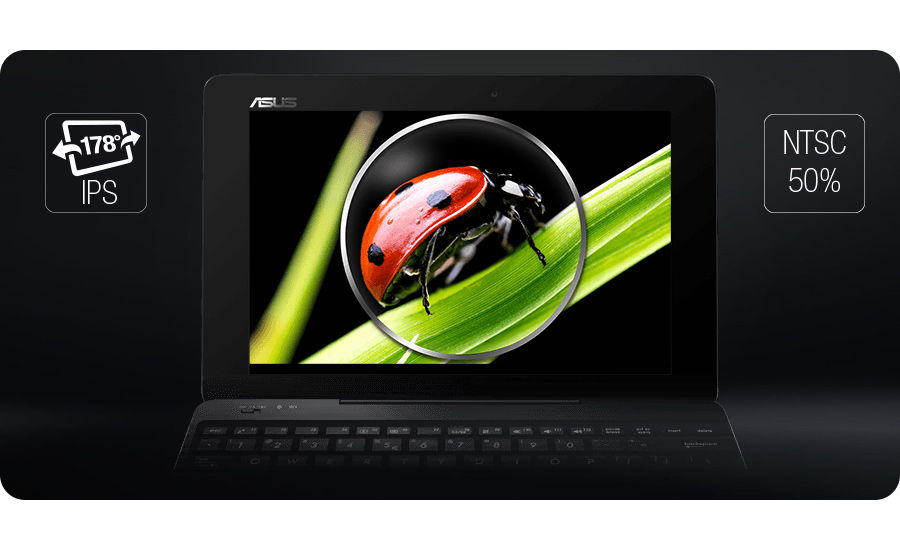 Za czysty i wyraźny obraz odpowiada w T100 Chi wyświetlacz ASUS TruVivid, stworzony przez bezpośrednie łączenie. Redukuje odblaski i zapewnia wyraźniejsze, bardziej żywe kolory w każdym oświetleniu, dzięki czemu obrazy wyglądają bardzo realistycznie. Technologia IPS gwarantuje bardzo szeroki kąt widzenia. Dzięki tym wszystkim funkcjom Chi naprawdę cieszy oko.