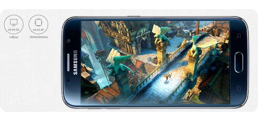 Błyskawiczne uruchamianie systemu i aplikacji to dowód na to, że Galaxy S6 oferuje niezrównane osiągi i zwiększoną energoosczędność. Obsługuje architekturę 64-bitową oraz został wyposażony w ultraszybką pamięć LPDDR4 i zaawansowany procesor graficzny. Z takim zapasem wydajności możesz jak nigdy dotąd korzystać z wielozadaniowości i funkcji multimedialnych.