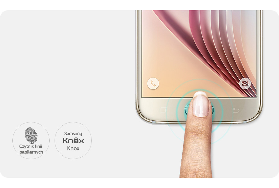 Galaxy S6 ma dwa sposoby na spokój ducha, na który zasługujesz – system KNOX oraz ulepszony skaner odcisków palców, które zapewniają bezpieczeństwo poprzez szyfrowanie cyfrowe.