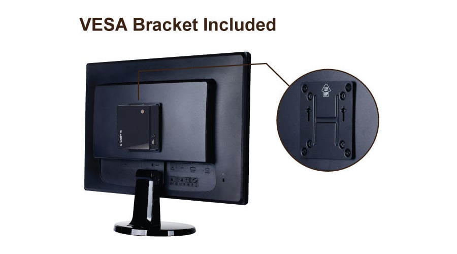 Dzieki dołączonemu specjalnemu uchwytowi, BRIX może został w prosty sposób zamontowany za monitorem lub telewizorem HDTV sprawiając że staje się praktycznie niewidoczny. Dzieki temu w prosty i efektywny sposób możesz zamienic każdy monitor lub telewizor zgodny ze standardem VESA w pełnoprawny komputer.