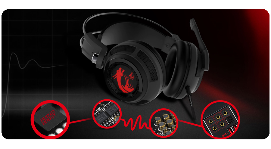 MSI Audio Boost poprawia jakość dźwięku. Pozłacane gniazda audio jack zapewniają stabilną transmisję dźwięku i w połączeniu ze zoptymalizowanym designem wzmacniacza audio słuchawek usłyszysz czystszy dźwięk, bez szumu i z dokładnym odwzorowaniem detali.