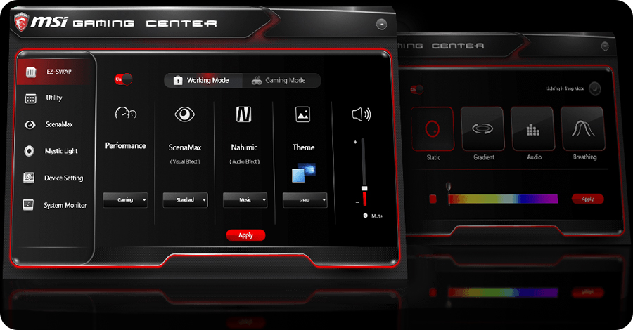 Większość wartości systemowych można dopasować w przyjaznej dla użytkownika aplikacji Gaming Center, która dostarcza lepsze wrażenia podczas grania. Szybko. Prosto. Przyjemnie.