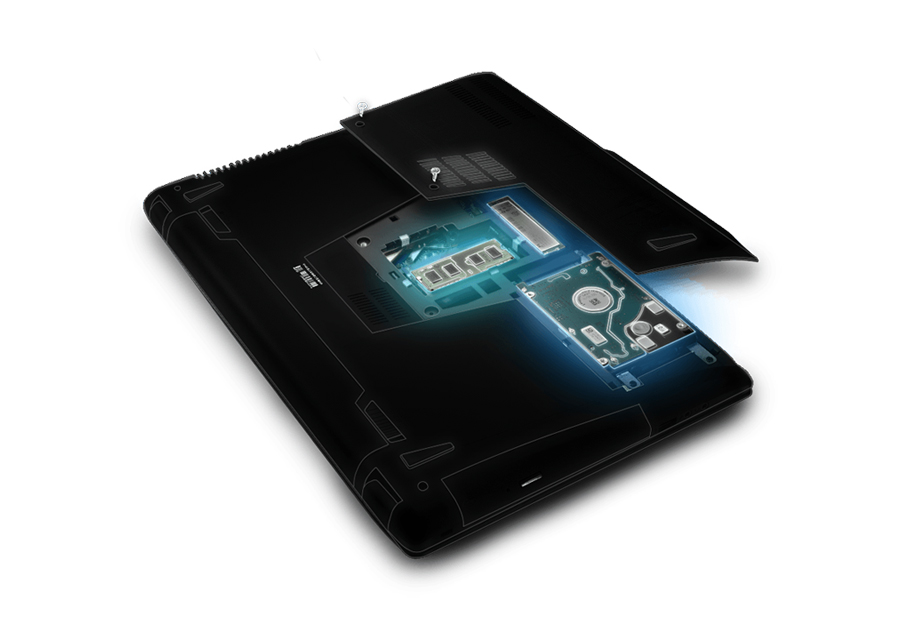 Wymiana podzespołów w GL752 jest bardzo prosta. Zdejmujesz pokrywę serwisową i masz możliwość wymiany dysku HDD, SSD M.2 oraz pamięci.