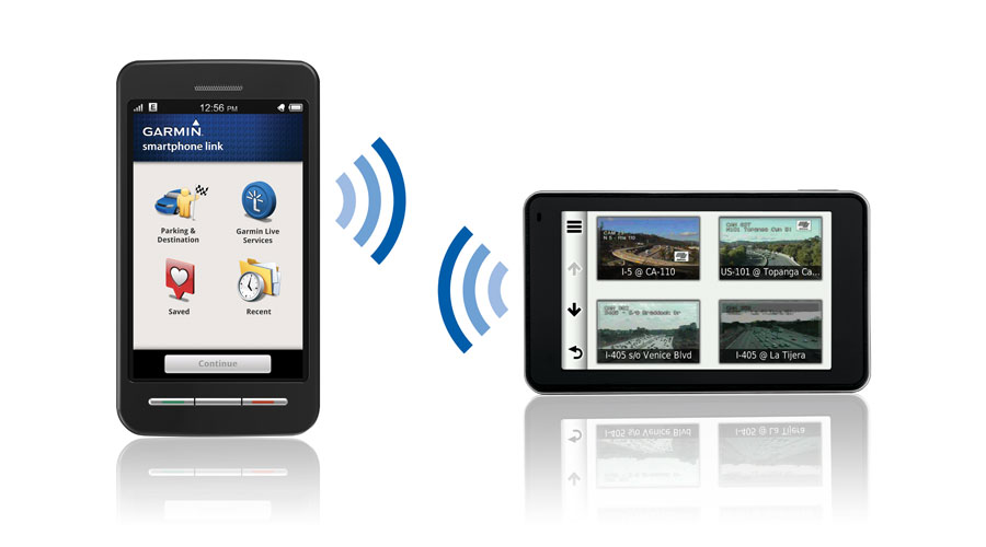 Aplikacja Smartphone Link zapewnia dostęp do usług Garmin Live**, czyli przydatnych, otrzymywanych w czasie rzeczywistym informacji, np. o utrudnieniach w ruchu czy o pogodzie. Aplikacja współpracuje ze smartfonami iPhone 4S i nowszymi oraz z niektórymi urządzeniami z systemem Android.