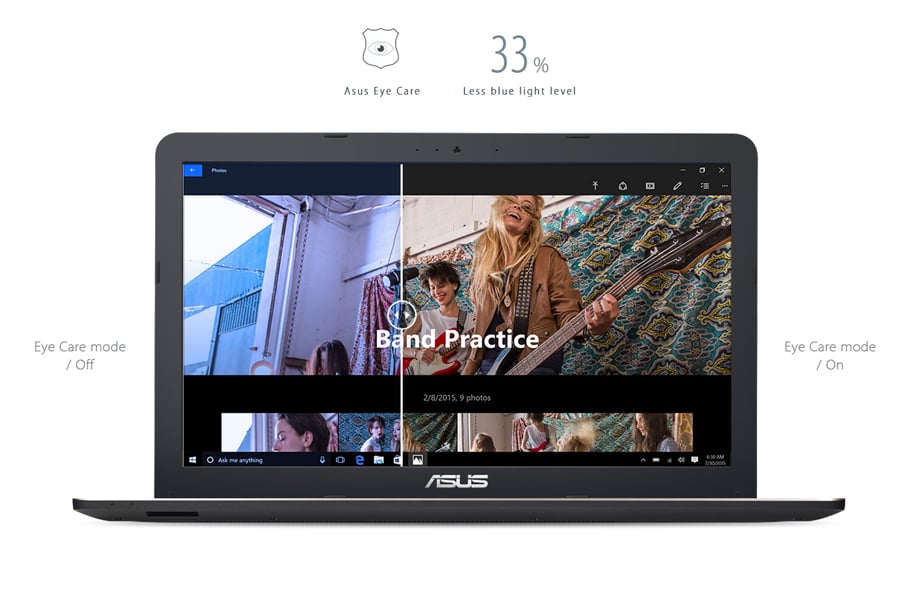 Technologia ASUS Splendid poprawia wyświetlanie kolorów w notebookach Asus i ożywia je, zabierając Cię w niesamowity świat bogatych odcieni i głębokich barw. Technologia ta posiada cztery trzyby wizualizacji obrazu, które mogą być dostępne za pomocą jednego kliknięcia. Vivid Mode optymalizuje kontrast do przeglądania zdjęć lub oglądania wideo i filmów. Eye Care Mode redukuje niebieskie natężenia oświetlenia i jest idealny , gdy czytasz przez długie godziny . Tryb normalny został dostrojony do codziennych zadań, natomiast tryb ręczny jest przeznaczony dla zaawansowanych regulacji kolorów.