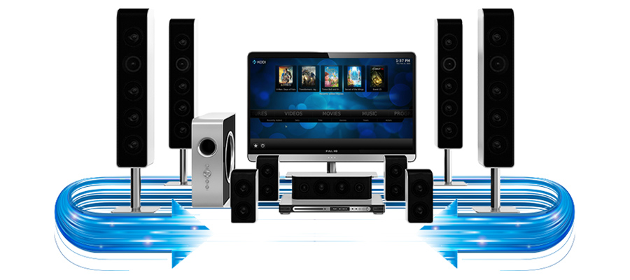 - Odtwarzanie filmów wideo w rozdzielczości 1080p, przesyłanie przez wyjście HDMI przestrzennego dźwięku 7.1-kanałowego
