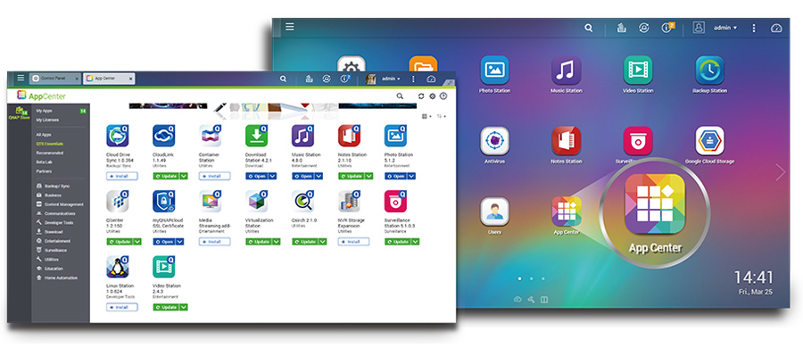 Model TS-851 posiada wbudowane centrum aplikacji App Center zapewniające dostęp do różnych instalowanych na żądanie aplikacji stworzonych bądź przez QNAP, bądź przez deweloperów zewnętrznych. Wśród aplikacji tych znajdują się m.in. narzędzia do backupu/synchronizacji, aplikacje biznesowe, narzędzia do zarządzania treścią, do komunikacji i pobierania plików, aplikacje rozrywkowe i wiele innych. Centrum aplikacji stanowi także centralną lokalizację do zarządzania zainstalowanymi aplikacjami oraz do aktualizowania ich. Ponadto platforma QNAP bazuje na idei open-source, aby umożliwić deweloperom tworzenie własnych aplikacji, co może, potencjalnie, nieograniczenie poszerzyć możliwości modelu TS-851.