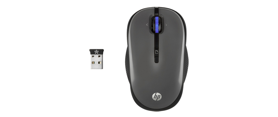 Oszczędność cennej przestrzeni na porty USB. Większa wygoda użytkowania. Bezprzewodowa mysz HP X3300 łączy ze sobą jednocześnie 5 zgodnych urządzeń*. Pojedynczy nanoodbiornik umożliwia podłączenie myszy, a następnie dodanie 4 dodatkowych akcesoriów.