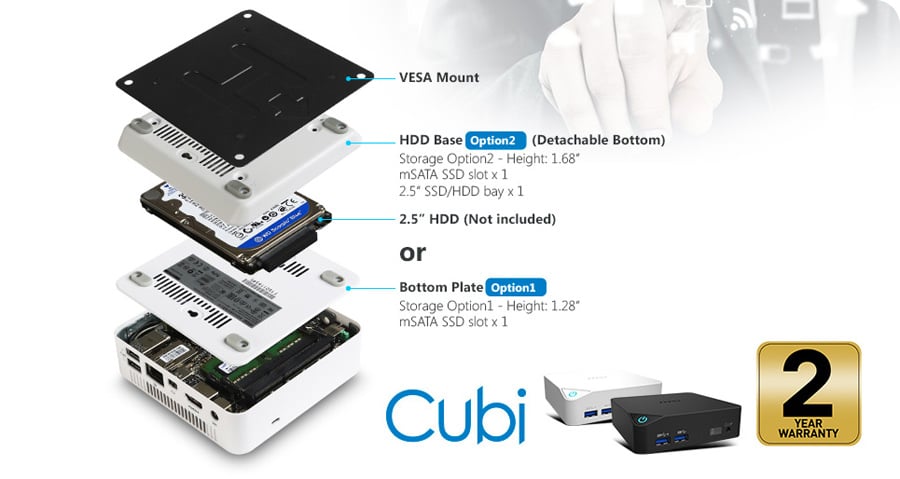 Dzieki specjalnemu uchwytowi, Cubi może zostać w prosty sposób zamontowany za monitorem lub telewizorem HDTV sprawiając że staje się praktycznie niewidoczny. Dzieki temu w prosty i efektywny sposób możesz zamienic każdy monitor lub telewizor zgodny ze standardem VESA w pełnoprawny komputer.