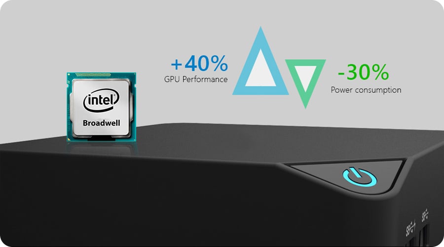 Komputer z usprawnionym procesorem Intel® Pentium® zapewnia doskonałą sprawność obsługi codziennych zadań. Dzięki wysokiej wydajności komputera możesz łatwo komunikować się ze znajomymi i rodziną, korzystać z rozrywki i pracować. Procesor Intel® Pentium® zapewnia sprawdzoną wydajność, oferowaną przez produkty firmy Intel oraz jakość, na której możesz polegać. Bazujący na 14nm mikro-architekturze procesor ze zintegrowanym wzrostem wydajności GPU o 40% oraz 30% mniejszym zużyciem energii w porównaniu do poprzedniej generacji sprawia, że komputer Cubi jest zarówno wydajny jak i energooszczędny.