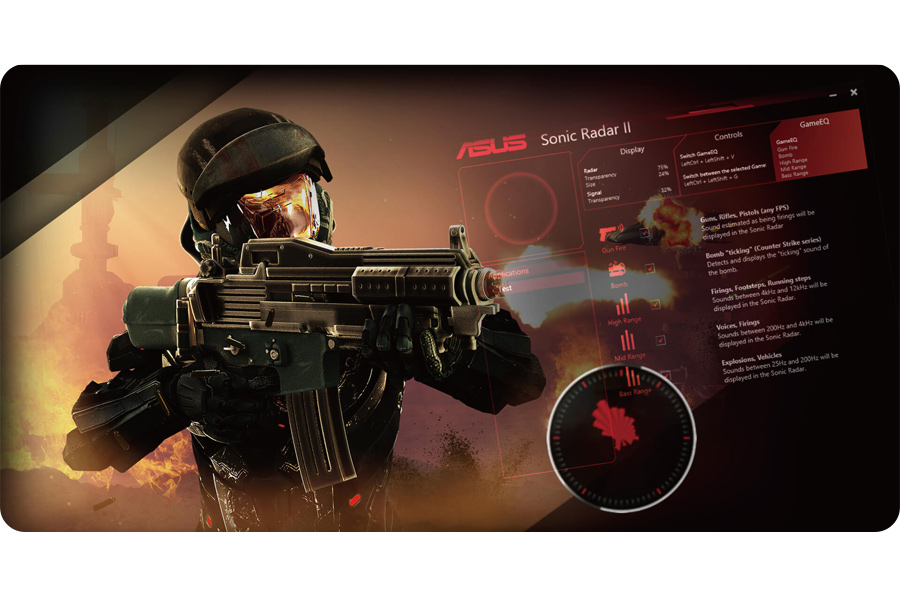 Sonic Radar II wyświetla nakładkę, która pokazuje, co zamierzają przeciwnicy i koledzy z drużyny na polu bitwy, a wszystkim można zarządzać z prostego panelu sterowania i listy gier, którą można dopasować. Wykryj kierunek i źródło dźwięków w grze i ćwicz umiejętności namierzania wroga. Technologia Audio Enhancement wzmocni każdy szczegół dźwięku – usłyszysz każdy, nawet najbardziej odległy krok przeciwnika i staniesz się myśliwym, a nie celem polowania.