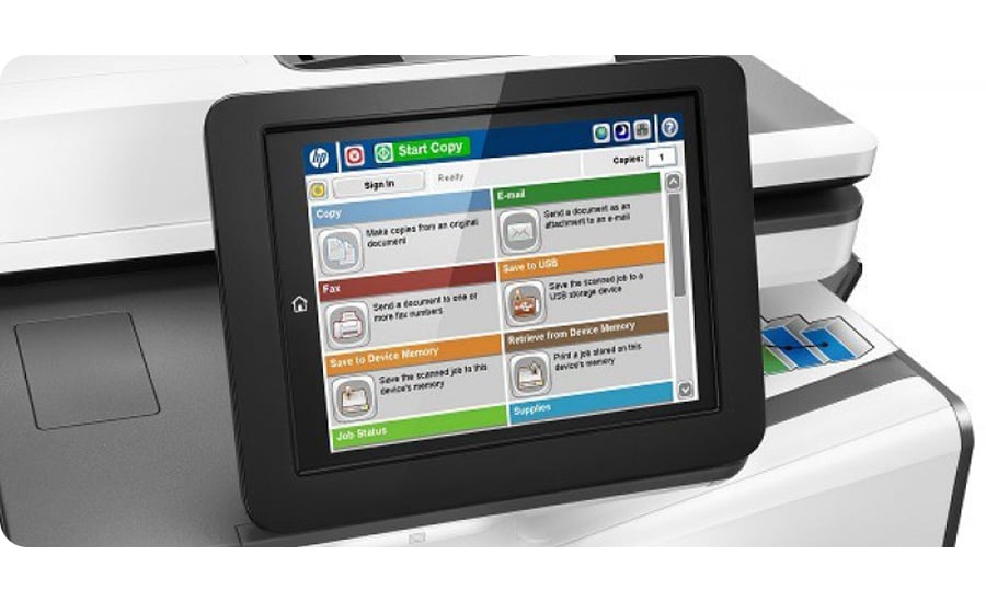 Mniej czekania, większa wydaność pracy z najwyższą prędkością z pośród wszystkich produktów HP. Dzięki zaawansowanym technologiom prędkość druku w kolorze i czerni może wynieść nawet do 50 str./min. Uzyskaj szybkie skanowanie dwustronne bezpośrednio do wiadomości e-mail oraz chmury dzięki temu urządzeniu wielofunkcyjnemu z obsługą protokołu LDAP. Zarządzaj zadaniami z ekranu dotykowego o przekątnej 8''.