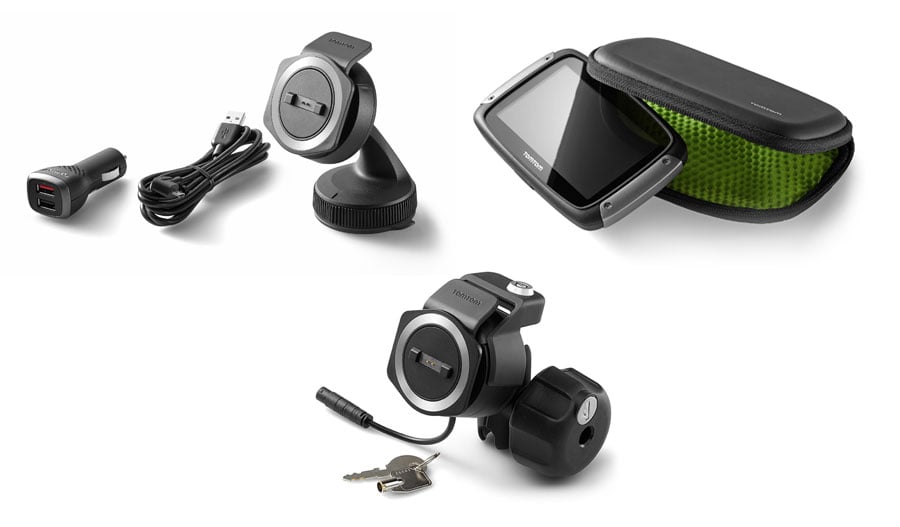 Nawigacja TomTom Rider 410 Premium Pack zawiera w komplecie trzy przydatne akcesoria, które zapewnią Ci wygodę użytkowania, oraz zabezpieczą również Twoje urządzenie przez zniszczeniem i kradzieżą.