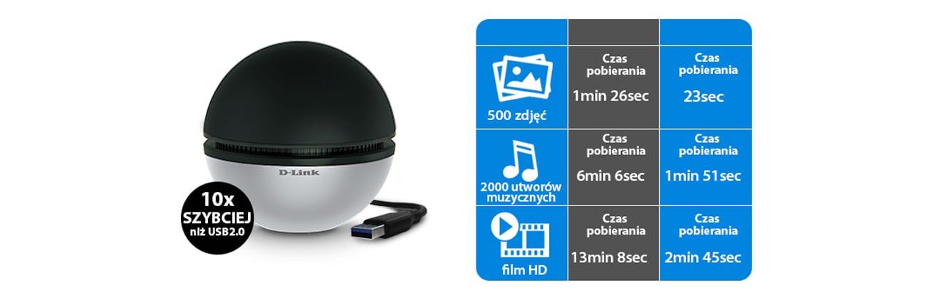 Adapter DWA-192 wyposażono w antenę konstrukcji 3 x 3, która umożliwia uzyskanie prędkości transmisji bezprzewodowej na poziomie do 600 Mb/s w paśmie 2,4 GHz oraz do 1300 Mb/s w paśmie 5 GHz przy jednoczesnym zmniejszeniu zakłóceń, oferując maksymalną przepustowość. Doskonale pasuje do wydajnego routera.