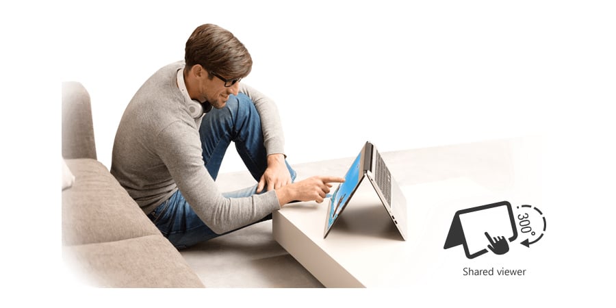 ASUS Transformer Book Flip może służyć jako laptop, tablet lub jako coś pomiędzy tymi dwoma trybami. Posiada ekran dotykowy, który można obrócić o dowolny kąt od 0 do 360 stopni. Podczas pracy używaj go jako normalnego laptopa. Aby grać, przejdź na tryb tabletu. Obróć ekran do trybu przeglądania, aby oglądać prezentacje, dokumenty, filmy i zdjęcia wspólnie z innymi ludźmi. Specjalnie opracowane zawiasy umożliwiają ustawienie wyświetlacza pod dowolnym kątem, zapewniając idealną pozycję do oglądania. Klawiatura i touchpad są automatycznie blokowane, co zapobiega przypadkowemu przyciskaniu klawiszy.
