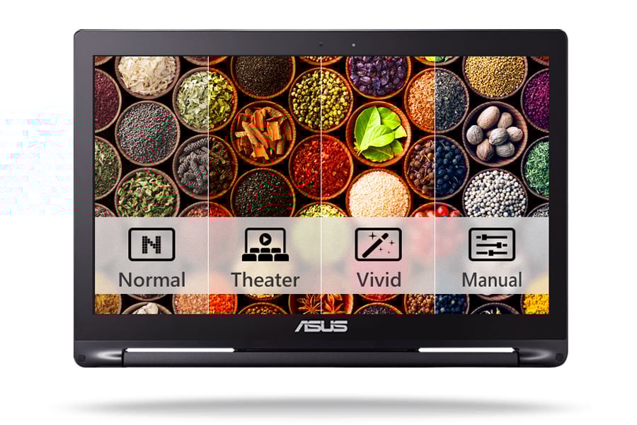 ASUS Transformer Book Flip łączy w sobie najnowszy sprzęt i ekskluzywną technologię firmy ASUS, zapewniając najwyższą jakość obrazu. Technologia ASUS Splendid automatycznie dostosowuje gamę kolorów i precyzję wyświetlacza. Dzięki temu zapewnia czysty obraz i żywe kolory niezależnie od tego, czy oglądasz na nim film, grasz, czy oglądasz zdjęcia.
