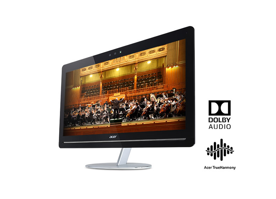 Głośniki z technologiami dźwięku Acer TrueHarmony™ i Dolby® Audio™ zapewniają mocny i realistyczny dźwięk.