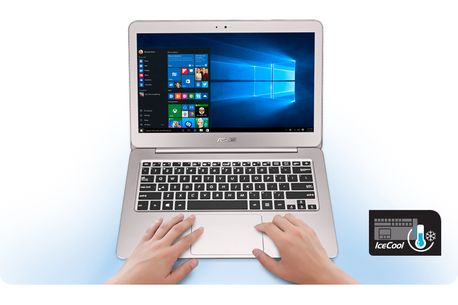 Autorska technologia ASUS IceCool zapobiega przegrzaniu oparcia na nadgarstki, utrzymując je w temperaturze ok. 28-35゚C, czyli poniżej temperatury ciała. Dzięki temu na ZenBook UX306 pracuje się o wiele przyjemniej niż na standardowych laptopach.