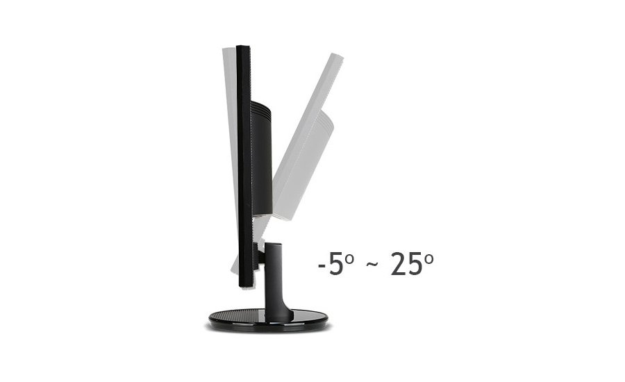 Ergonomiczne podstawki monitorów z serii K2 można pochylić pod kątem od -5 do 25 stopni, co pozwala na optymalizację kątów widzenia.