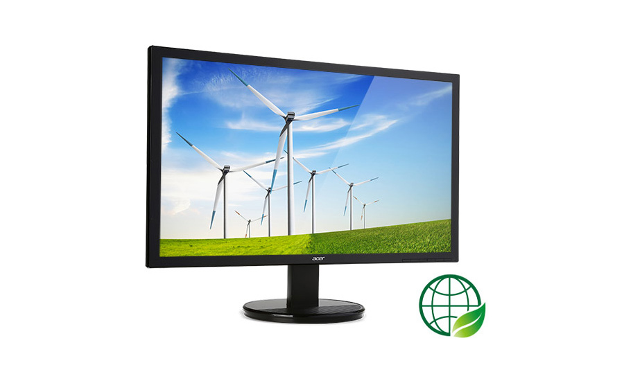 Monitory z serii K2 są bezpieczne dla Ciebie i dla otoczenia. Wykorzystują podświetlenie z pozbawionych rtęci białych diod LED i spełniają wymagania normy ENERGY STAR® 6.0. Wykonane w technologii Acer EcoDisplay ekrany monitorów zostały skryte pod taflą niezawierającego arsenu szkła, co dodatkowo redukuje negatywny wpływ na środowisko naturalne. Ponadto opakowania urządzeń Acer są wykonywane z materiałów nadających się do powtórnego użytku.