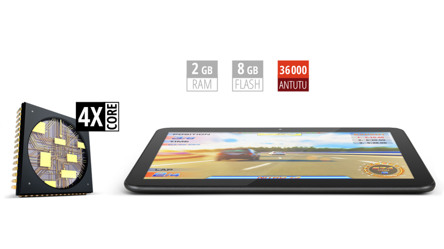 Ekran IPS o rozdzielczości 1920x1200 px przy przekątnej 10,1” i proporcji 16:10 ucieszy nawet najbardziej wymagających użytkowników. Zdziwisz się, jak wiele detali nie zauważyłeś podczas grania w ulubioną grę czy oglądając ciekawy film. A jeśli dodasz do tego jeszcze pojemnościowy panel dotykowy z 10-punktową funkcją multitouch, tablet staje się prawdziwie mobilnym centrum rozrywki.