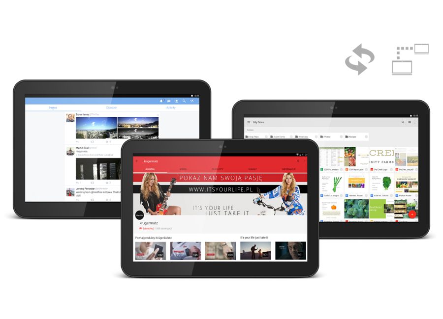 Zapomnij o przesyłaniu danych przewodowo! Tablet wyposażony jest w bezprzewodową łączność Bluetooth, Wi-Fi oraz obsługę zewnętrznych modemów 3G. Sprawdź jak łatwo i szybko zdobędziesz potrzebne Ci informacje i pliki.
