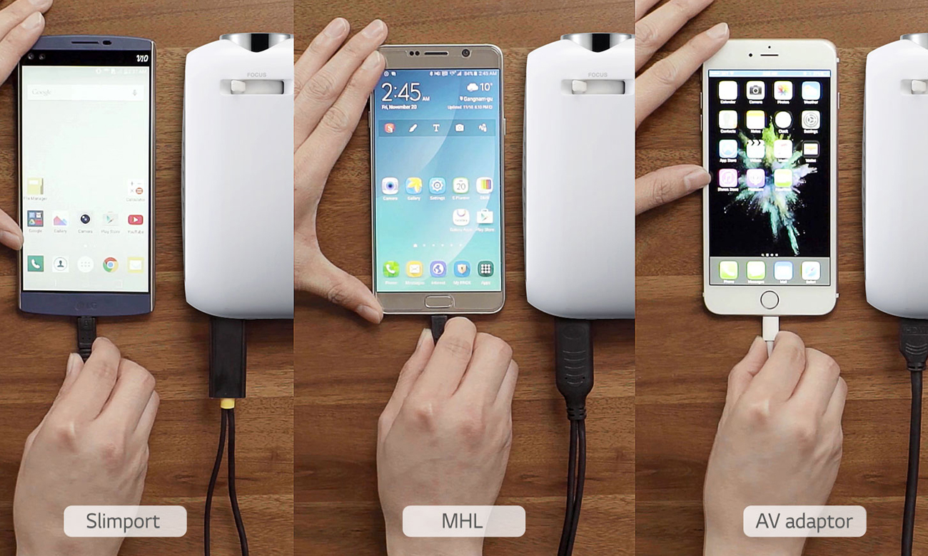 W przeciwieństwie do standardowych projektorów, funkcja LG Screen Share umożliwia bezprzewodowe przesyłanie obrazu z komputera, smartfona czy tabletu.
