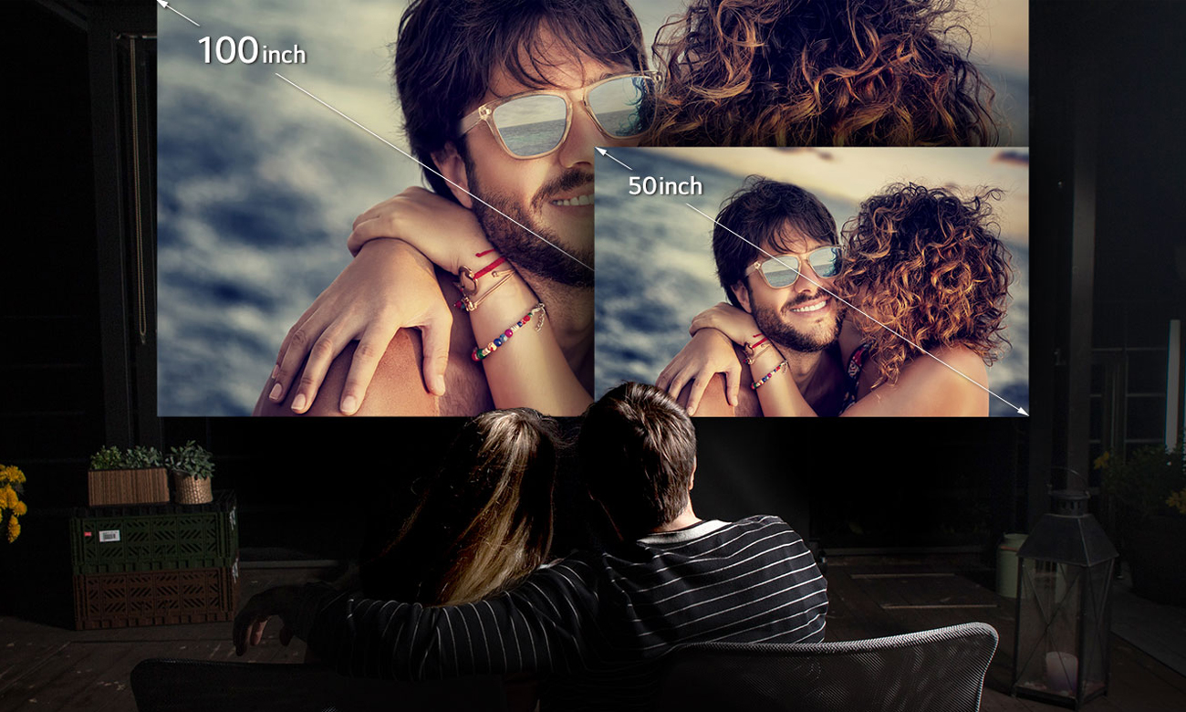 Projektor zapewnia kinową jakość w rozmiarze ekranu do 100 cali, dzięki czemu każdy znajdujący się w pomieszczeniu widz może delektować się doskonałym obrazem