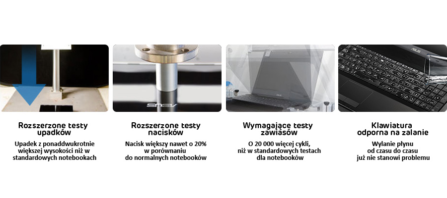 Notebooki z serii ASUSPRO B oferują zwiększoną ochronę dysków twardych dzięki absorbującej wstrząsy poduszce opracowanej z myślą o ochronie dysku przed wstrząsami podczas transportu. Dodatkowo, dyski twarde posiadają mechanizmy ochronne, na które składa się G-sensor i oprogramowanie, które aktywnie chroni przed mającymi nastąpić upadkami, zabezpieczając dane. Wbudowany, trójwymiarowy, cyfrowy przyspieszeniomierz posiada trzy tryby: wyłączony, normalna czułość oraz wysoka czułość. Ostatnia opcja jest ustawiona domyślnie i wykrywanie upadków jest zawsze aktywne..