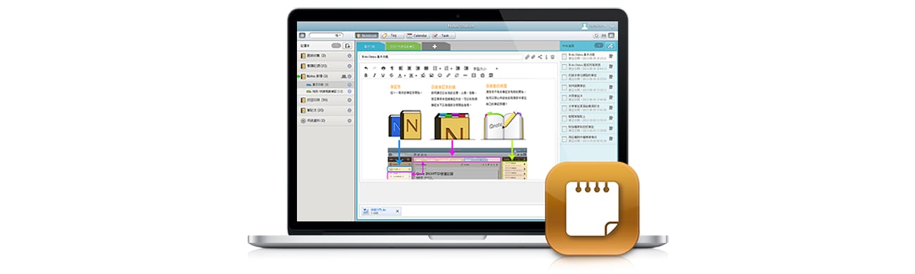 Aplikacja Notes Station umożliwia bezpieczne udostępnianie współpracownikom swoich prywatnych cyfrowych notatek. Wystarczy kilka kroków, aby tworzyć i edytować notatki w intuicyjnym edytorze webowym. Użytkownik może też łatwo korzystać z bogatych zasobów multimedialnych przechowywanych na serwerze TS-431U w celu udoskonalania swoich notatek.