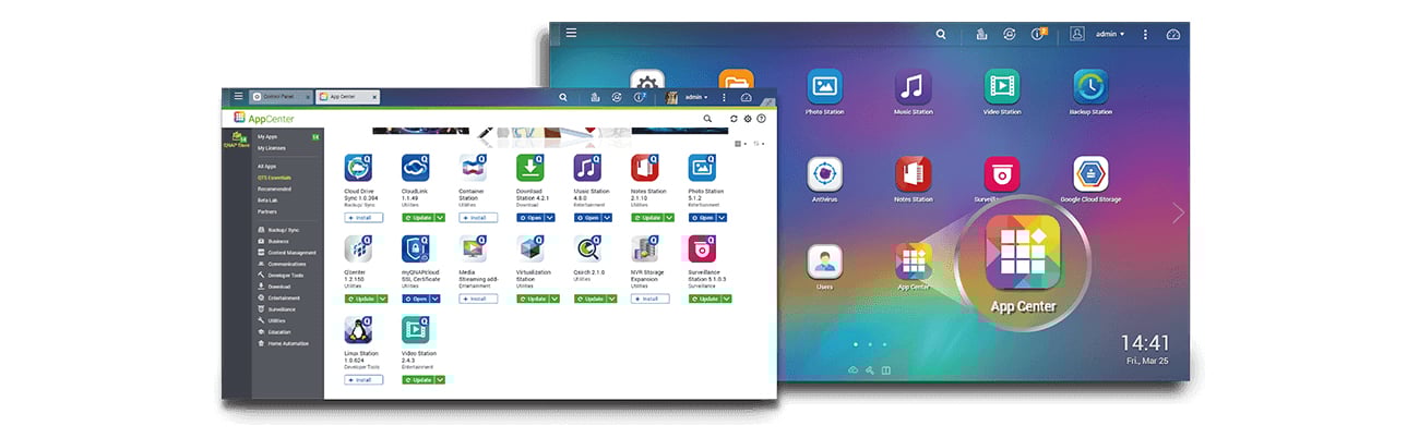 Model TS-431U posiada wbudowane centrum aplikacji App Center zapewniające dostęp do różnych instalowanych na żądanie aplikacji stworzonych bądź przez QNAP, bądź przez deweloperów zewnętrznych. Wśród aplikacji tych znajdują się m.in. narzędzia do backupu/synchronizacji, aplikacje biznesowe, narzędzia do zarządzania treścią, do komunikacji i pobierania plików, aplikacje rozrywkowe i wiele innych.