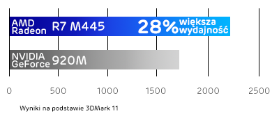 Laptop został wyposażony w układ graficzny AMD Radeon. Jest on w pełni zgodny z najnowszym DirectX 12 oraz Shader Model 5.0, dzięki czemu nigdy nie przeoczysz żadnego graficznego detalu podczas rozgrywki! Od teraz możesz cieszyć się multimediami oraz oglądać materiały wideo w pełnej rozdzielczości FullHD.