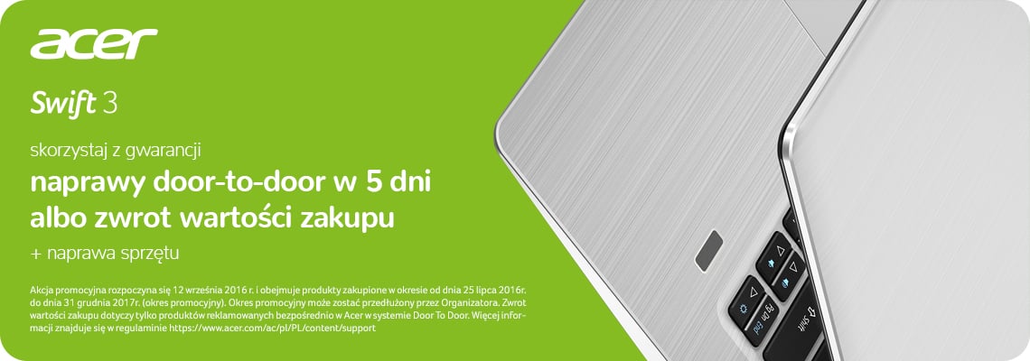 Aluminiowa obudowa jest przyjemna w dotyku i nadaje laptopowi osobowość. Swift 3 ma 17,9 mm grubości i waży 1,8 kg, dzięki czemu jest stylowy, smukły i łatwy w przenoszeniu.
