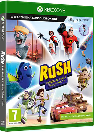 „Rush: Przygoda ze studiem Disney Pixar” zaprasza całe rodziny i graczy w każdym wieku do światów znanych z sześciu uwielbianych produkcji studia DisneyPixar, pozwalając poznać je jak nigdy wcześniej. Połącz siły z bohaterami filmów „Iniemamocni”, „Ratatuj”, „Odlotu”, „Auta”, „Toy Story” i „Gdzie jest Dory?”, by wspólnie rozwiązywać zagadki i odkrywać tajemnice w zremasterowanej wersji 4K Ultra HD i HDR.