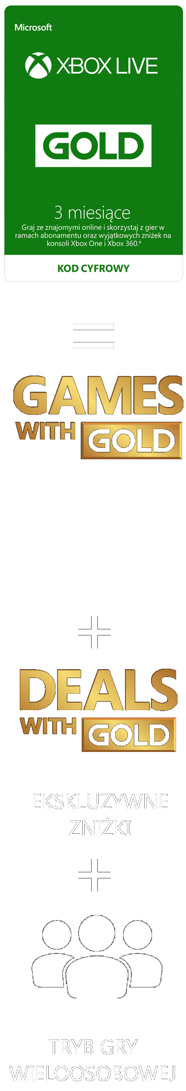 Xbox Live Gold to Twoje przepustka do świata gier online i rozrywki na najwyższym poziomie. Co miesiąc czekają na Ciebie dodatkowe gry, zaawansowany tryb wieloosobowy, ekskluzywne zniżki w sklepie Xbox Store i wiele więcej!