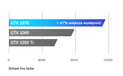 Płynność rozgrywki definiuje karta graficzna, dlatego tak ważny jest wybór wydajnego układu o dużej mocy. Karta graficzna GeForce GTX 1070 zainstalowana w powyższym laptopie zapewnia o 47% wyższą wydajność, w porównaniu do innych popularnych układów graficznych. Wybieraj kartę graficzną świadomie i graj tak, jak lubisz.