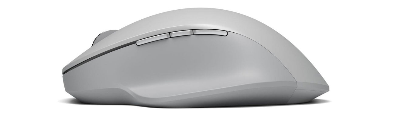 Mysz Surface Precision Mouse została stworzona z myślą o długich godzinach pracy dzięki przemyślanym szczegółom ergonomicznym, w tym uchwytom bocznym, podpórce na kciuk i eleganckiemu zakrzywionemu kształtowi, który dostosowuje się do dłoni.