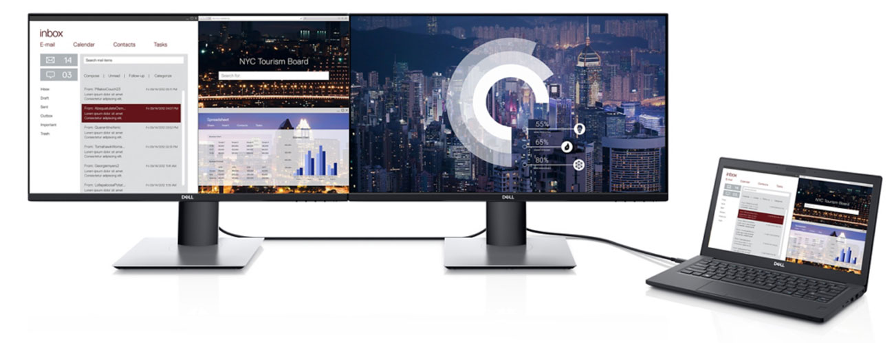 Dell P2219HC umożliwia łatwe łączenie szeregowe maksymalnie dwóch monitorów FHD wyposażonych w wyjście DisplayPort 1.2.