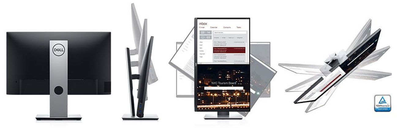Ukryj plątaninę kabli i skup się na pracy dzięki ulepszonej konstrukcji pozwalającej zarządzać kablami. Monitor ma certyfikat TUVi i został wyposażony w ekran z funkcją eliminującą migotanie oraz w funkcję ComfortView, która redukuje szkodliwe promienie niebieskiego światła. Monitor powstał z myślą o optymalnym komforcie oczu, nawet w przypadku dłuższego oglądania.