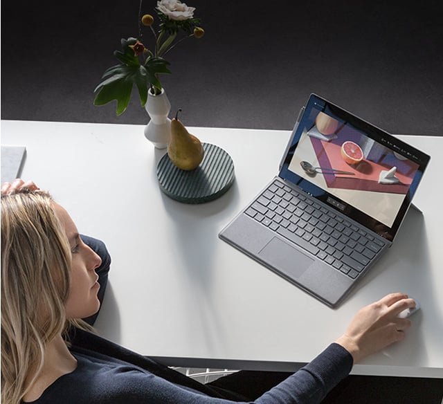 Korzystaj ze wszystkich funkcji laptopa z klawiaturą Signature Type Cover*, piórem Surface* i myszą Surface Arc Mouse*. Możesz dowolnie dobierać kolory tych akcesoriów2.