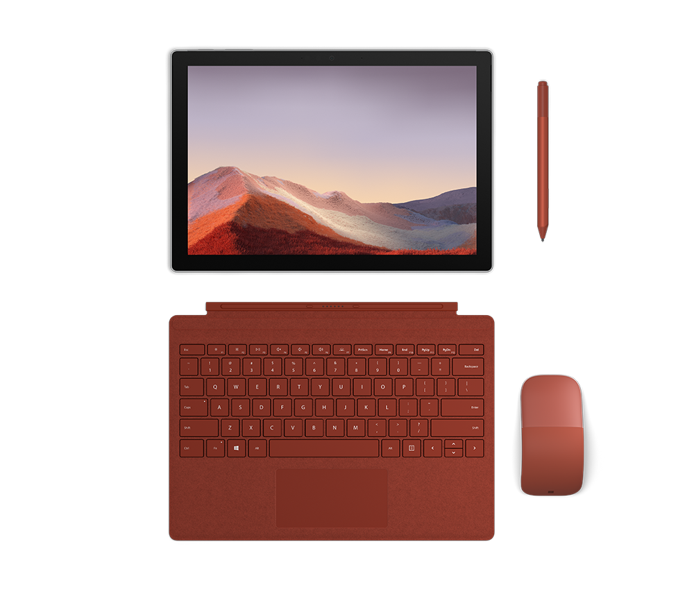 Spersonalizuj swoje urządzenie Surface Pro 7: najpierw wybierz kolor obudowy — platynowy lub czarny matowy3 — a następnie dopełnij całość dzięki klawiaturze Signature Type Cover, pióru Surface Pen* i myszy Surface Arc Mouse dostępnych w szerokiej gamie kolorów.* Daj się usłyszeć głośno i wyraźnie dzięki dwóm ulepszonym mikrofonom studyjnym dalekiego zasięgu.