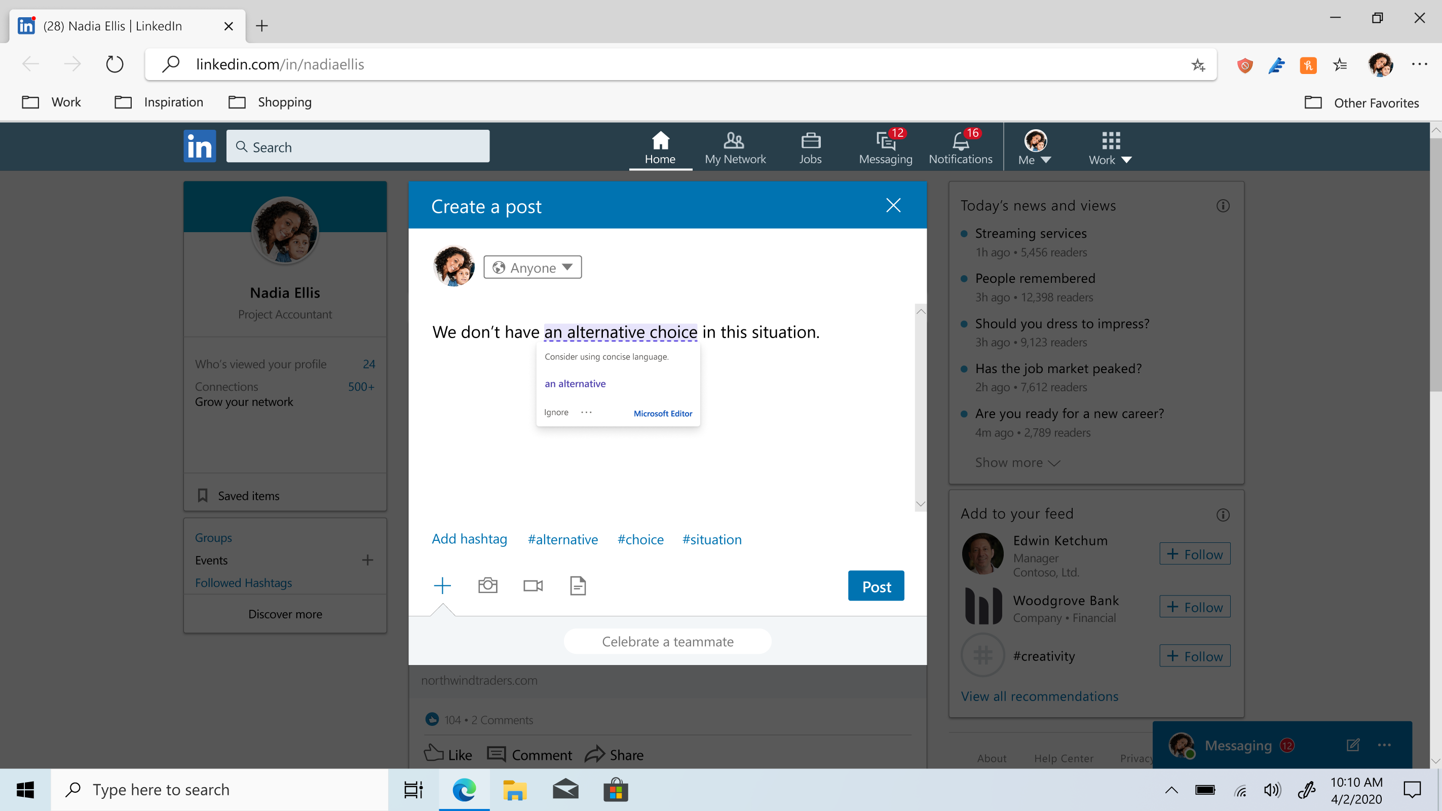 Redaktor Microsoft2 to inteligentny asystent, który pozwala tworzyć najlepsze teksty wszędzie tam, gdzie piszesz. Redaktor udostępnia zaawansowaną pomoc dotyczącą gramatyki i pisowni w ponad 80 językach.
