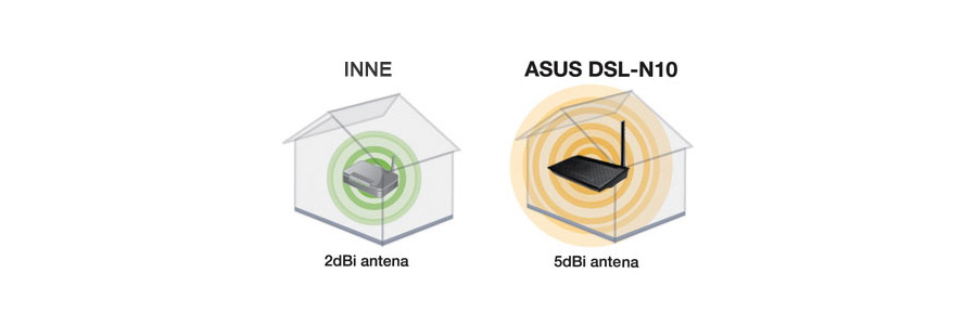 ASUS DSL-N10 B1 jest prawdziwym urządzeniem typu „2 w 1”, ponieważ może działać jako modem z ruterem przewodowym i bezprzewodowym albo jako sam ruter. Łączy wszystkie cechy obu typów urządzeń i uzupełnia je dodatkowymi funkcjami, w tym dużym zasięgiem dzięki antenie 5 dBi, czterema różnymi SSID, łatwą konfiguracją „podłącz i połącz” oraz prostym ustalaniem priorytetów w ruchu sieciowym