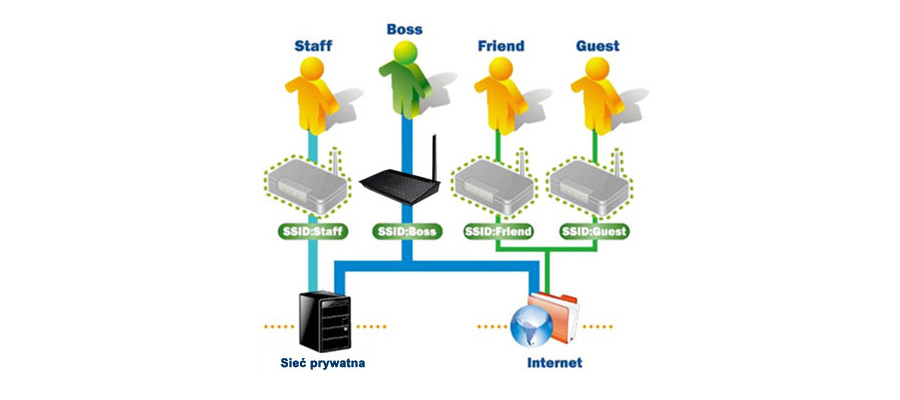 W DSL-N10 B1 można ustanowić do czterech sieci bezprzewodowych dzięki czemu możesz ustalić sięć np dla gości bez dostepu do lokalnych zasobów.