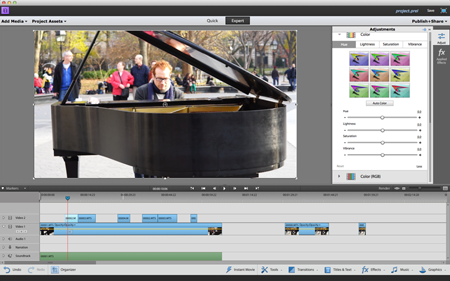 Adobe Premiere Elements 11Funkcjonalne środowisko montażu wideo jest pomocne na każdym kroku pracy nad filmem. Zautomatyzowane opcje, efekty specjalne i wskazówki dostępne w aplikacji usprawniają przekształcanie klipów wideo w ciekawe filmy, które zachwycą rodzinę i znajomych. Filmy z programu Elements są teraz dostępne w podróży — na smartfonie lub tablecie. |