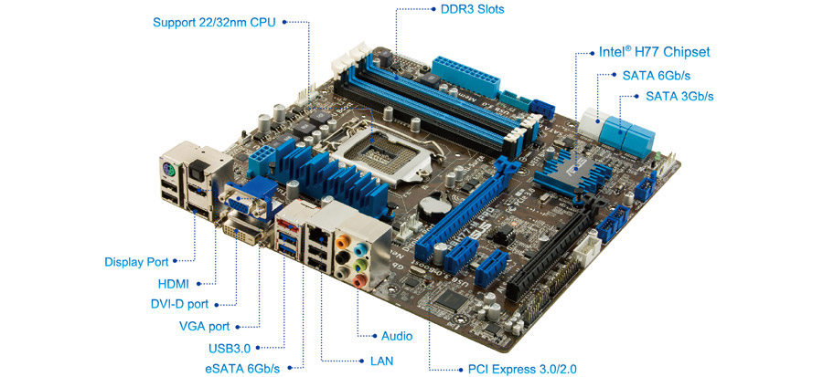 Ta płyta główna obsługuje procesory Intel drugiej i trzeciej generacji z podstawką LGA 1155, układem graficznym iGPU oraz zintegrowanymi kontrolerami pamięci i magistrali PCI Express, które współpracują z wyjściem graficznym w odpowiednich chipsetach płyty głównej, dwukanałową pamięcią DDR3 (4 moduły DIMM) i 16 szynami PCI Express 3.0/2.0. To przekłada się na doskonałą wydajność graficzną. Procesory Intel drugiej i trzeciej generacji należą do najwydajniejszych i najbardziej sprawnych energetycznie układów na świecie.